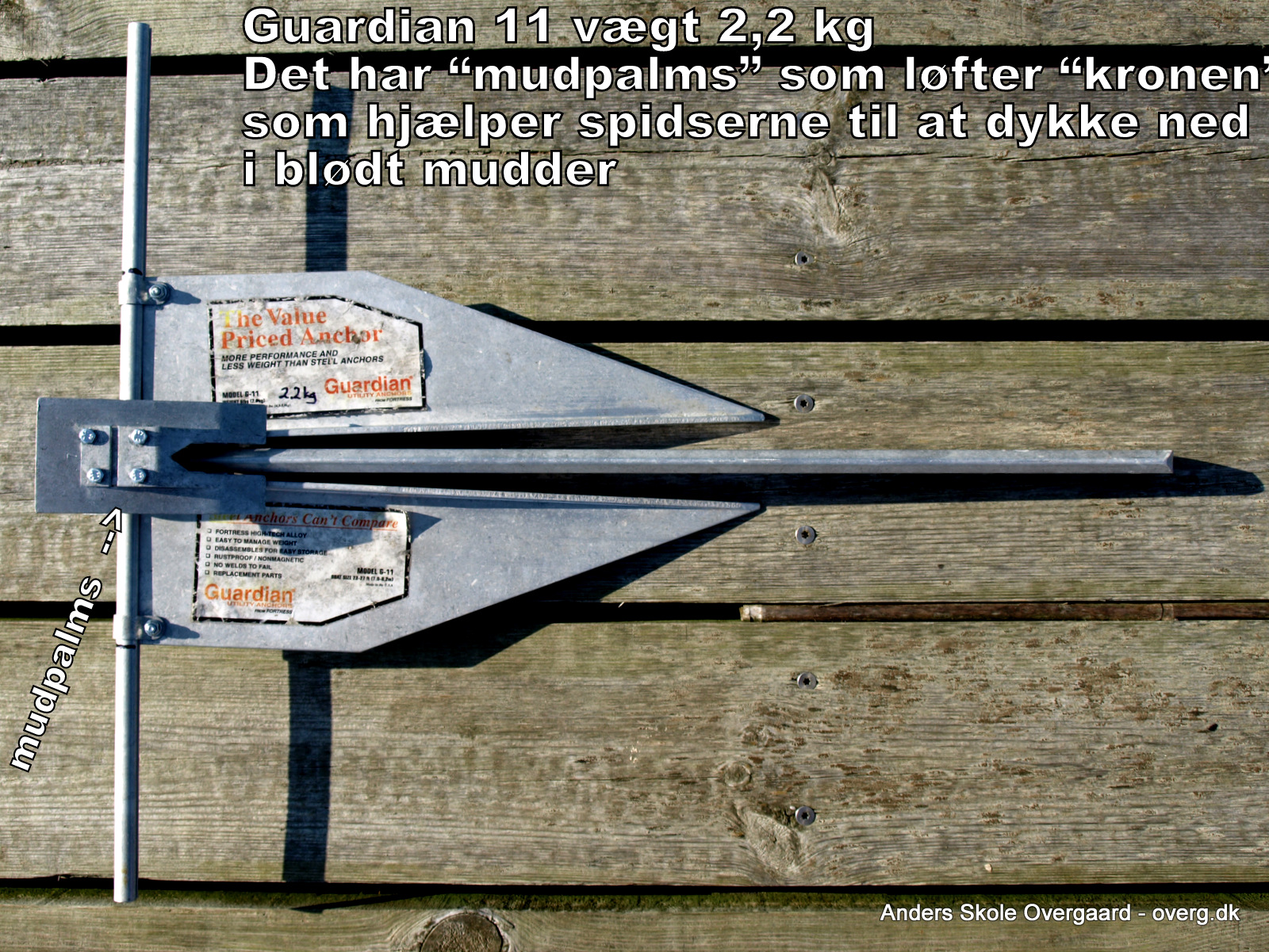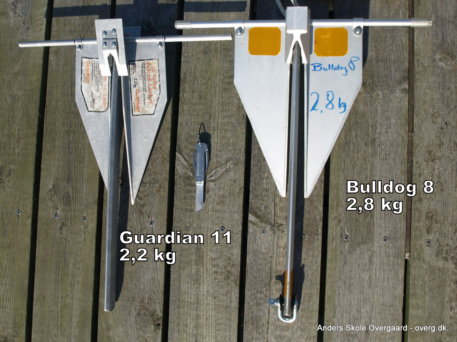 Guardian anker er letvægtsanker (altså aluminium), af samme type som stålankeret Danforth, kaldet et ”vippepladeanker”. Jeg afprøver et brugt Guardian 11 (G11) og sammenligner med et tilsvarende Bulldog 8 – 2,8 kg og et Bulldog 5 – 1,5 kg.
