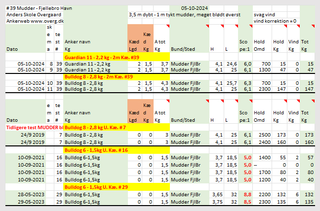 Resultat ankertest # 39 – Blødt mudder – skema:
