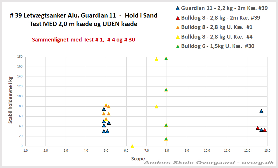 # 39 Ankertest Guardian 11 – 2,2 kg; Sammenligning med Bulldog 8 – 2,8 kg