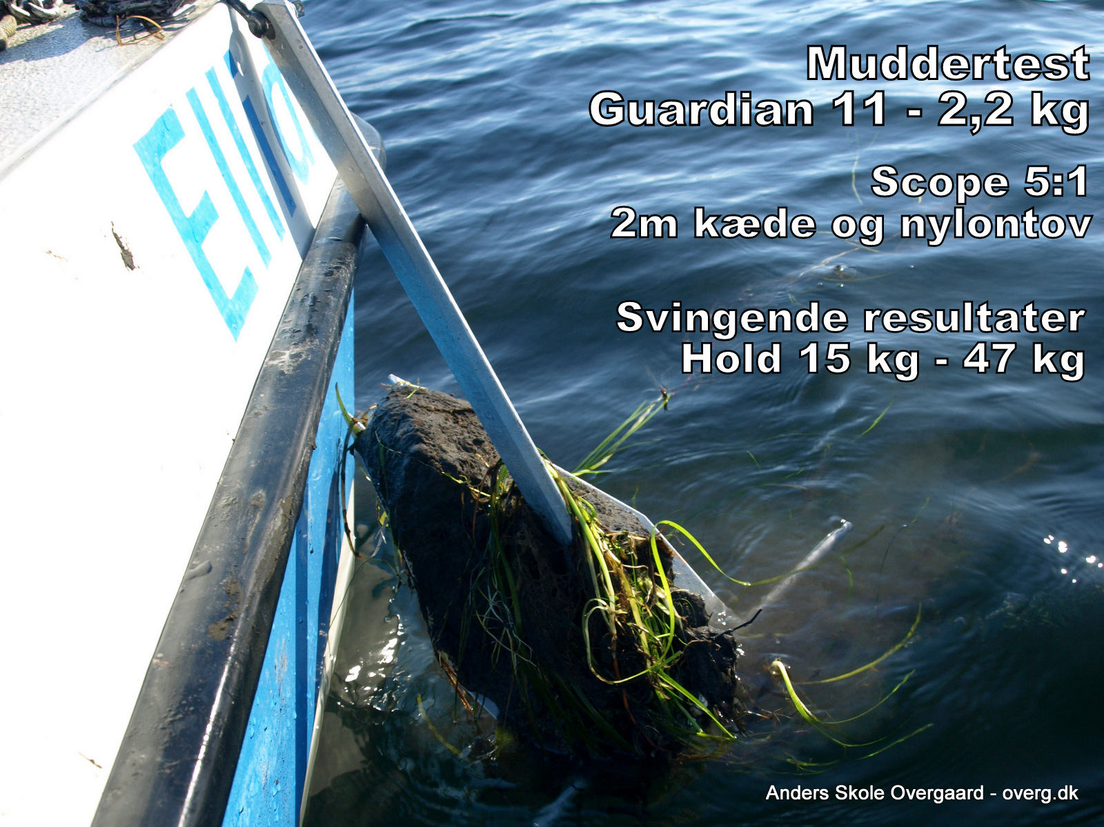 Guardian 11 og andre letvægtsankre. Ankertest i blødt mudder