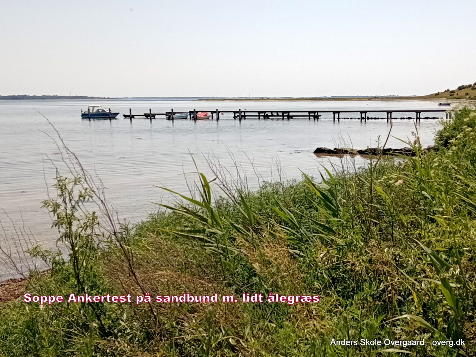 Sandbunden er finkornet sand med lidt organisk materiale, som pakker godt om ankeret.