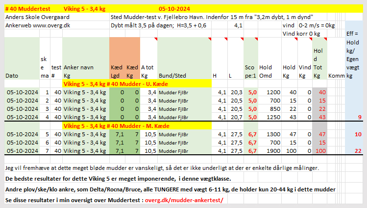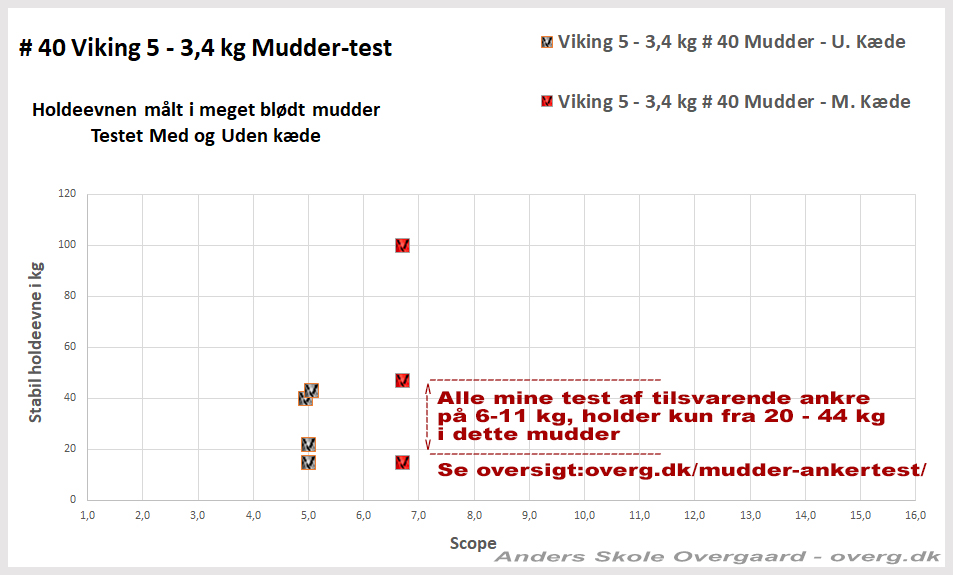 Viking 5 gav gode resultater på holdeevne 47-100 kg i det meget bløde mudder.