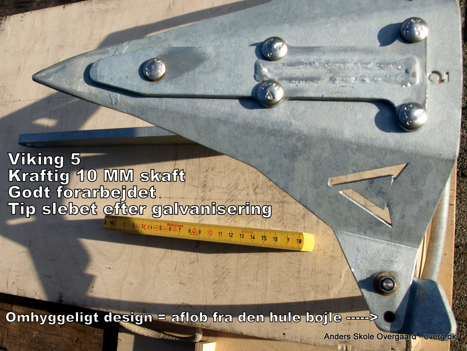 Ankeret har en MEGET høj ”tipvægt” i forhold til alle andre ankre, som jeg har afprøvet. Tipvægt Viking 5 = 1,3 kg = 38 % af ankerets totale vægt.