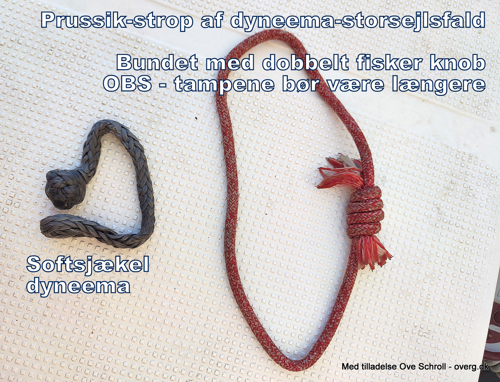 Endelig har jeg lavet en prusik af Dyneema i strømpe, som går omkring kæden.