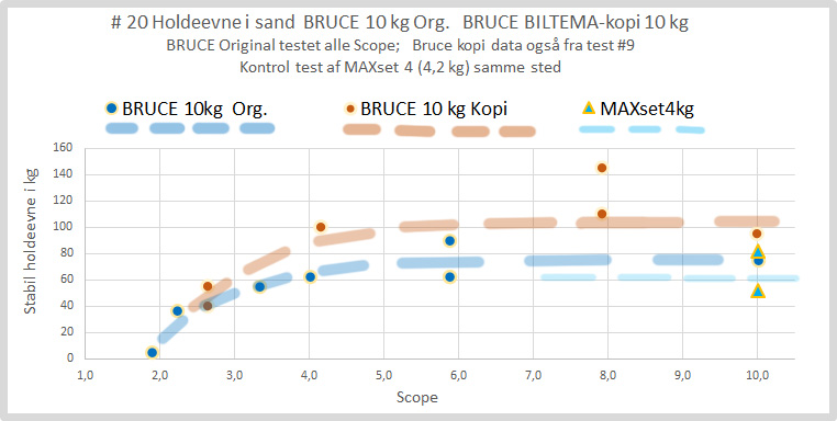 Resultat af Anker-træk-test BRUCE Original og Kopi 10 kg: