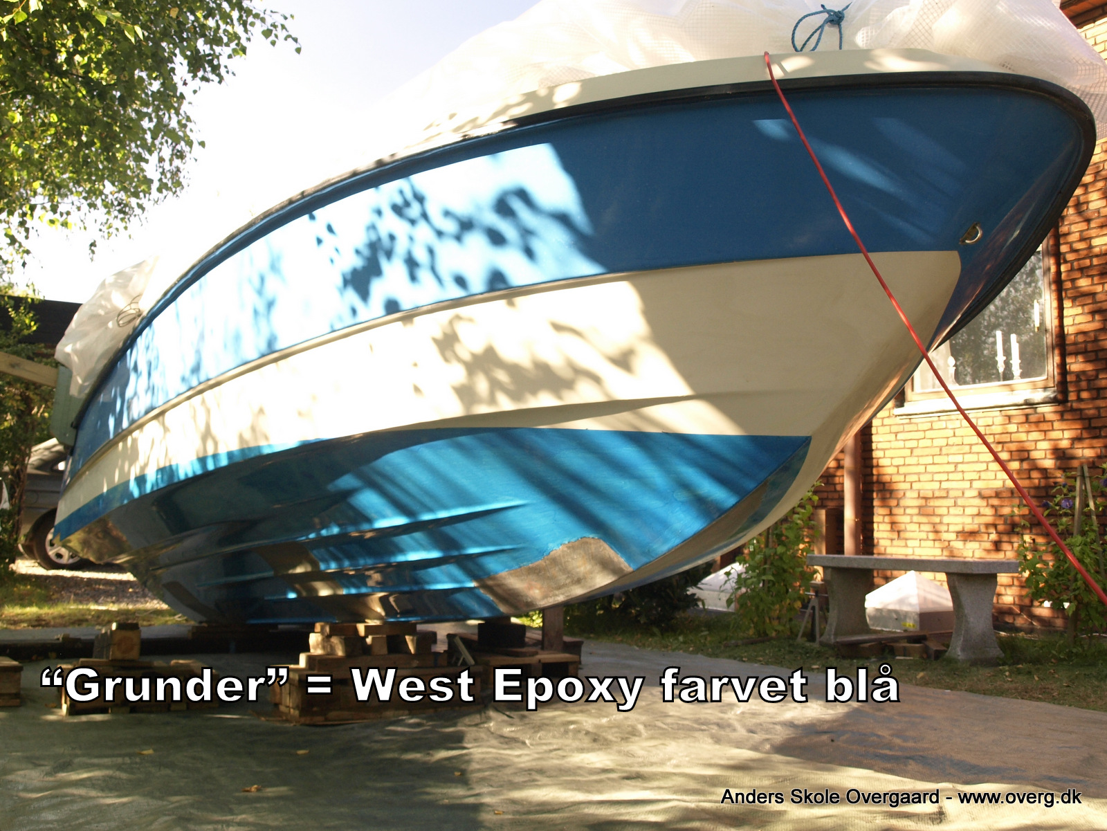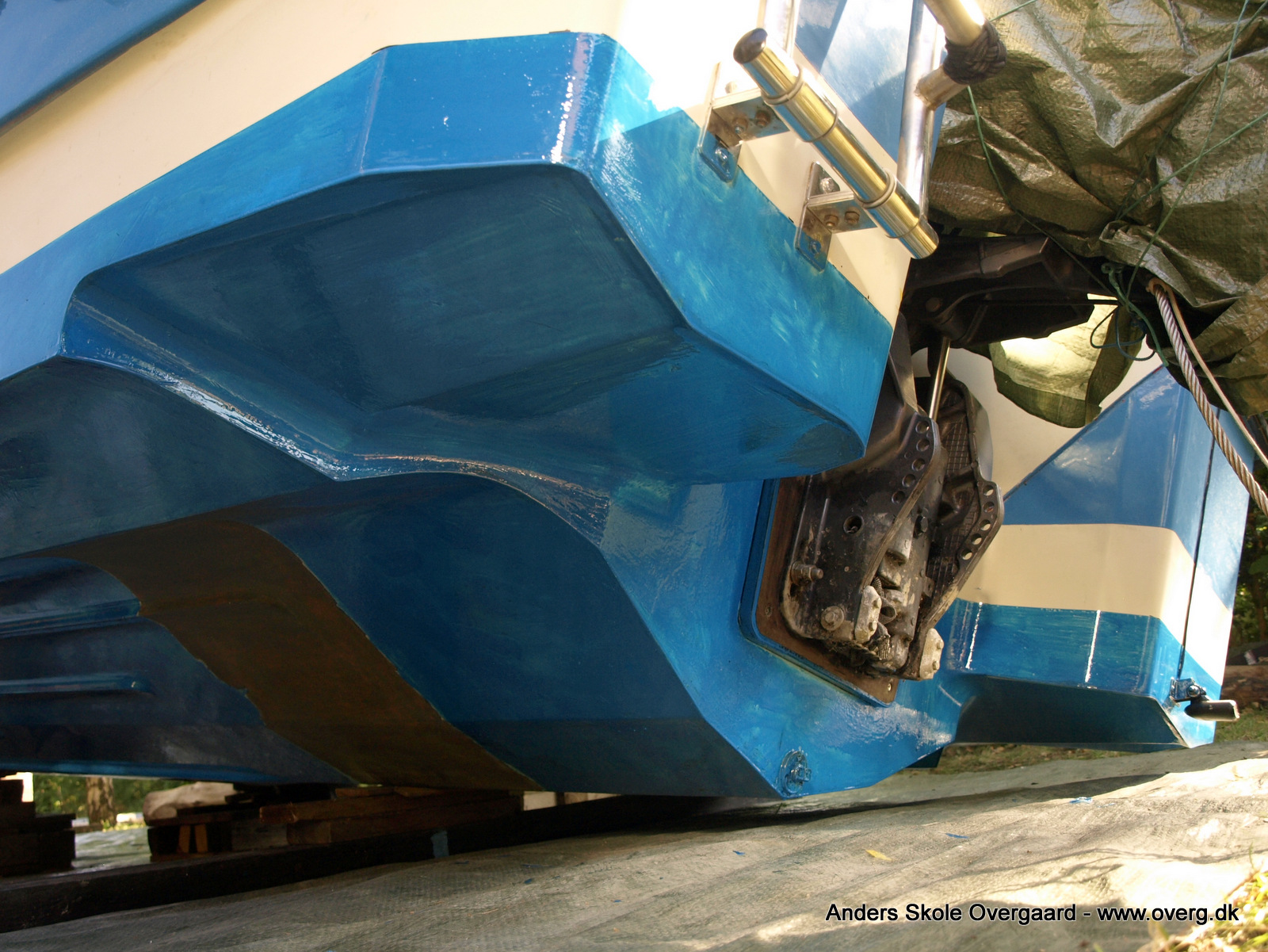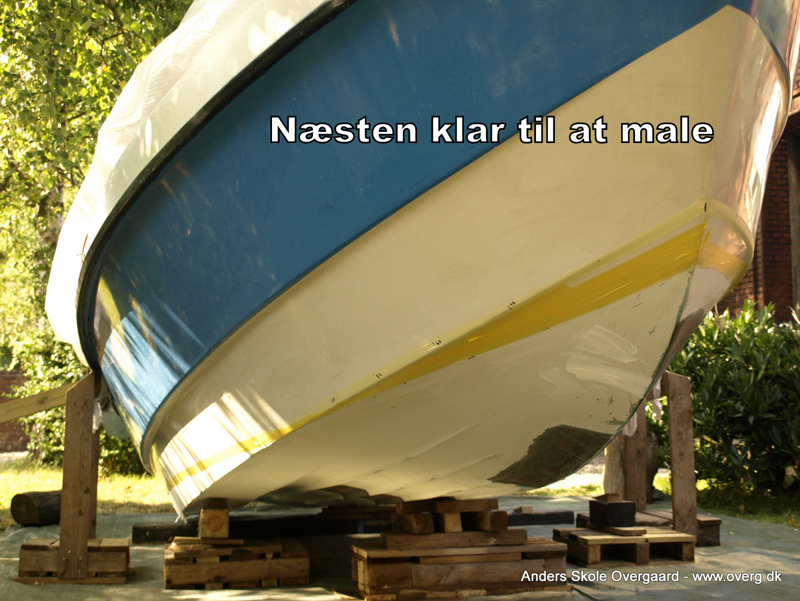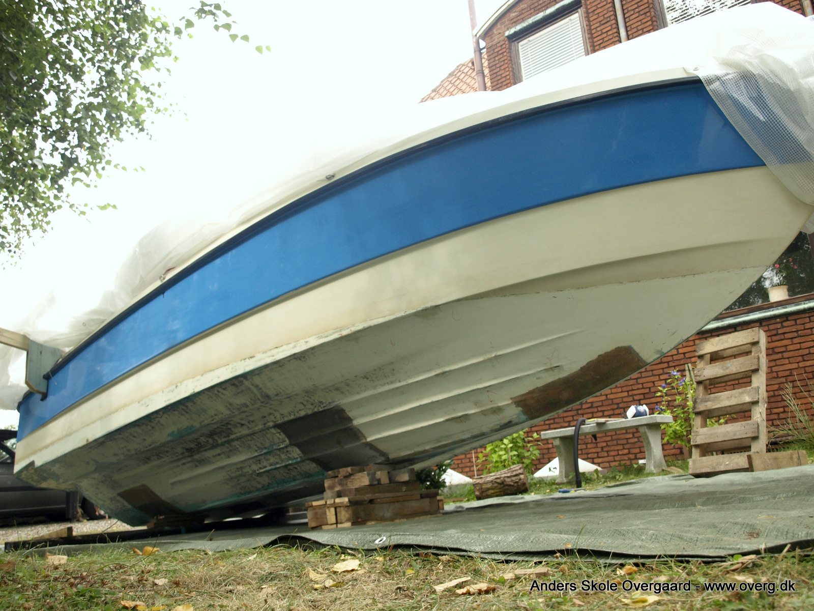 Efter nogen år kom der små blærer, hvor gelcoaten IKKE var blevet renset totalt inden maling med Coppercoat. Derfor skal jeg NU slibe og reparere “frimærkestore” skavanker en gang imellem.