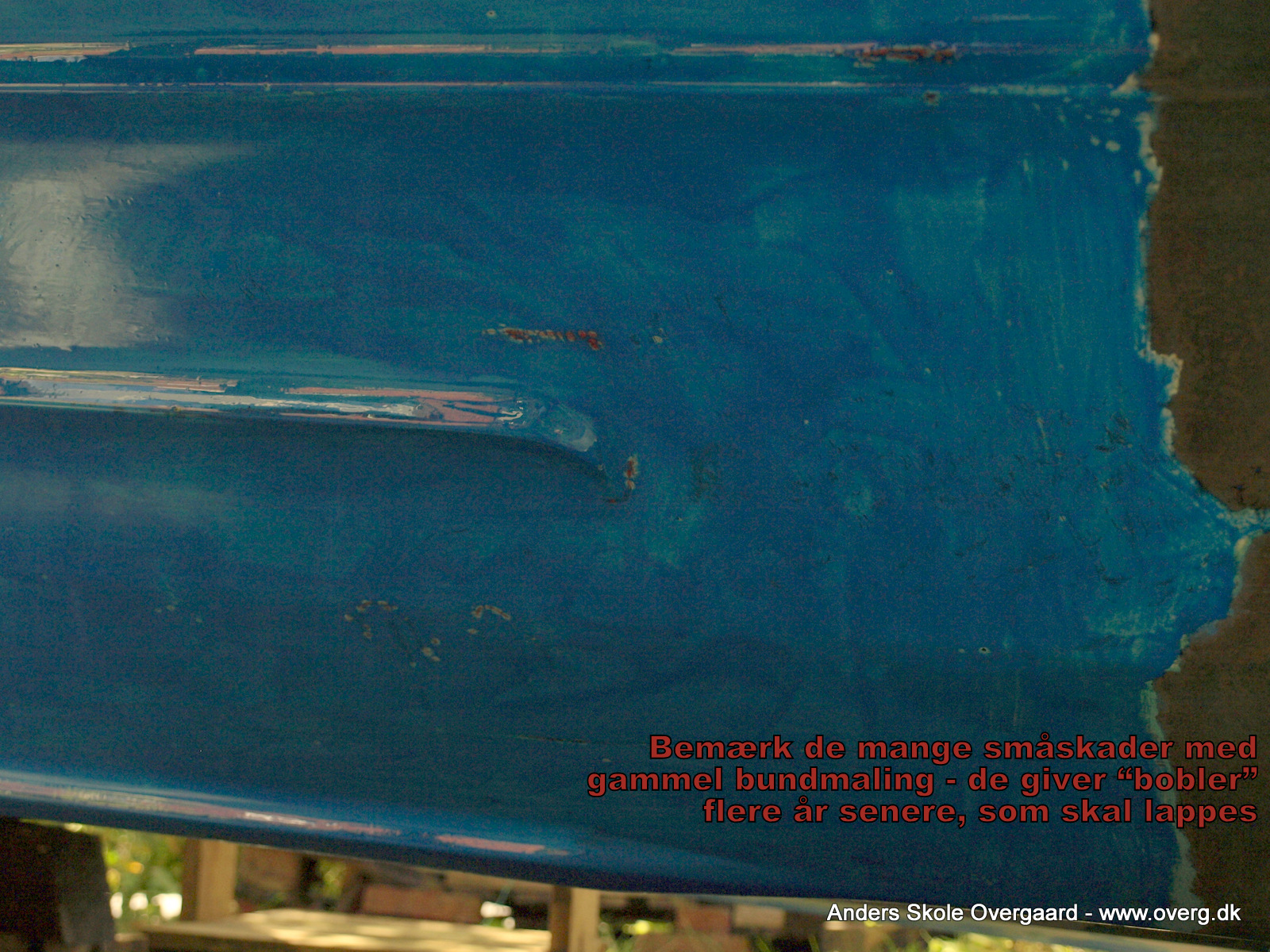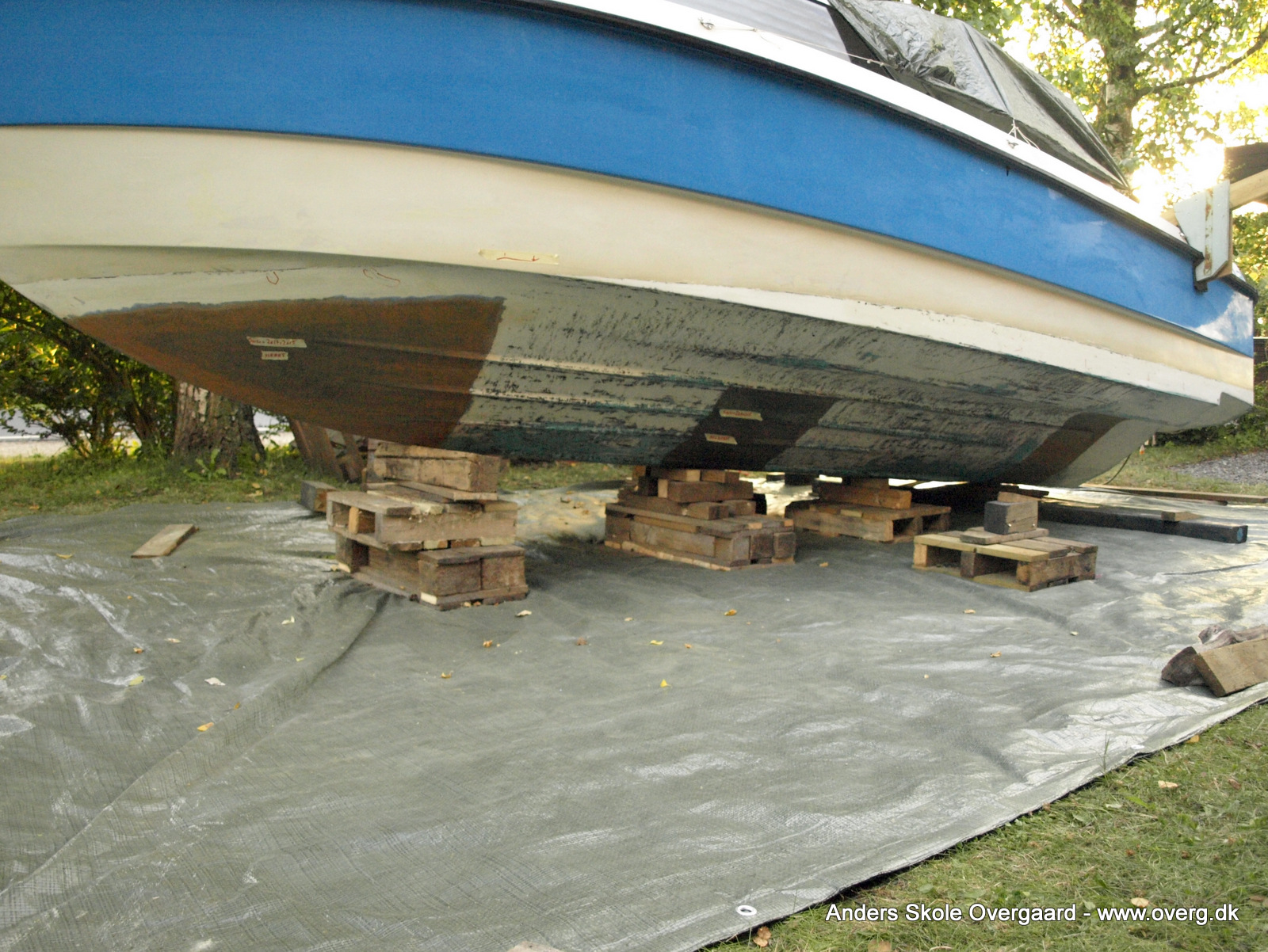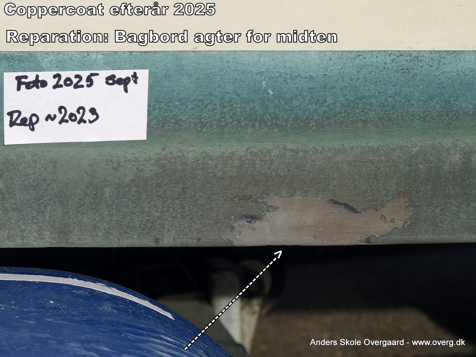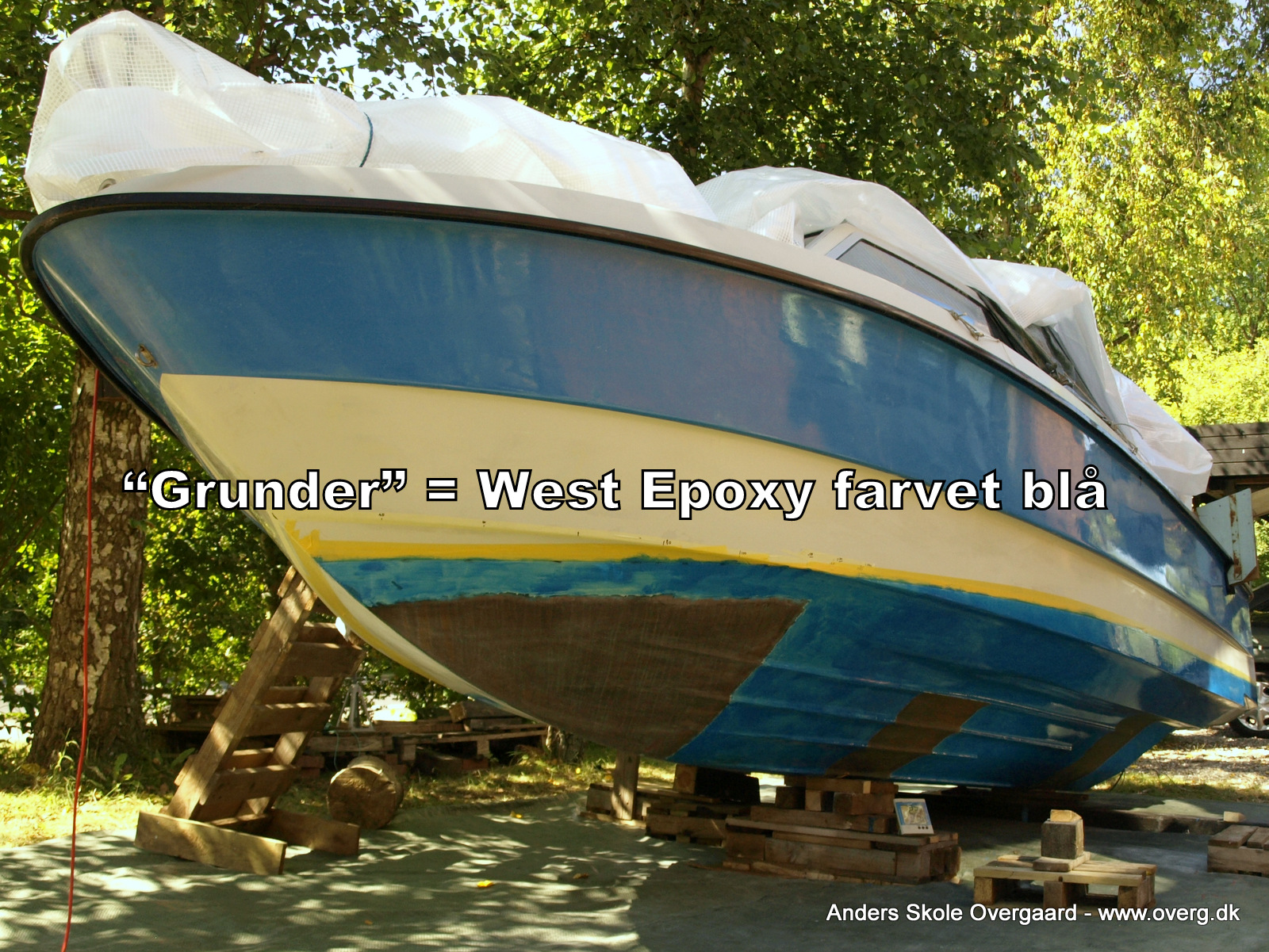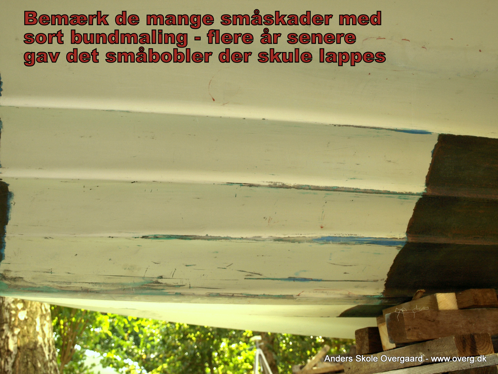 Efter nogen år kom der små blærer, hvor gelcoaten IKKE var blevet renset totalt inden maling med Coppercoat. Derfor skal jeg NU slibe og reparere “frimærkestore” skavanker en gang imellem.