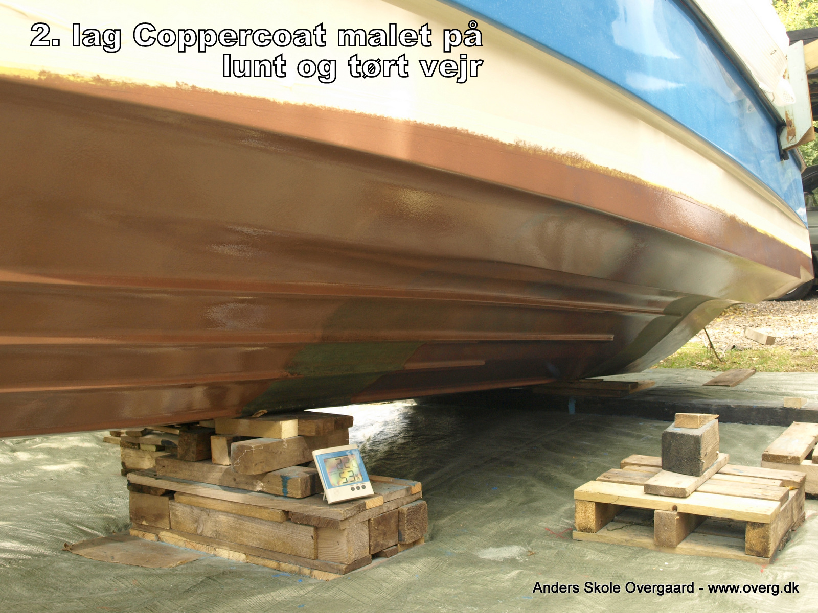 Coppercoat skal males på i 4-5 lag, der skal udføres “vådt i vådt”. Vigtigt at overholde “overmalings-intervallerne”.