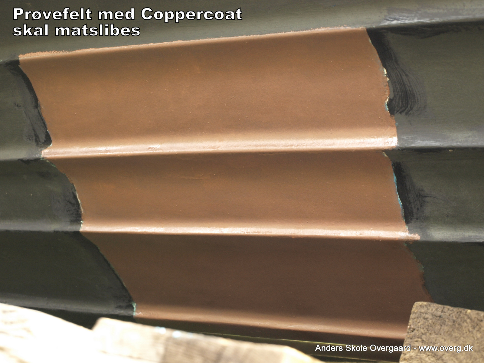 Prøvefelterne med Coppercoat er blevet matslebet.
