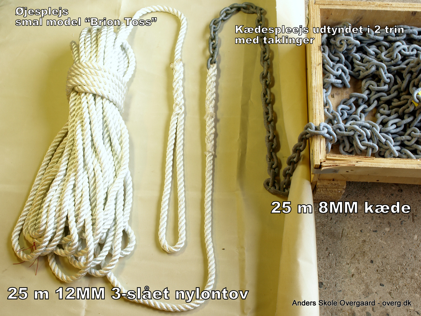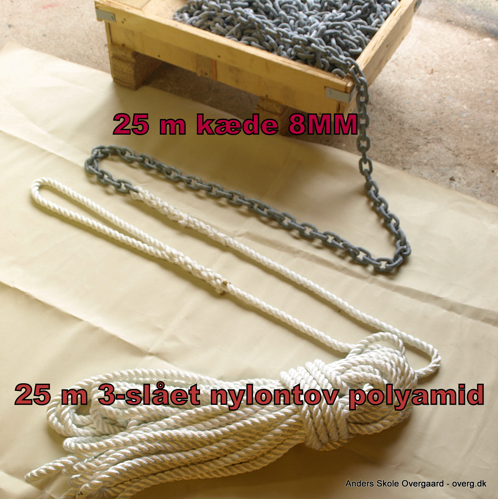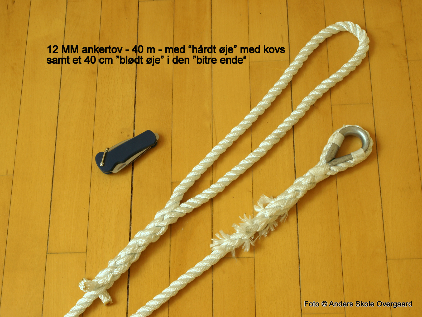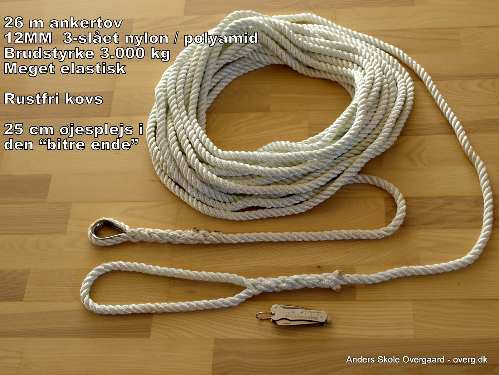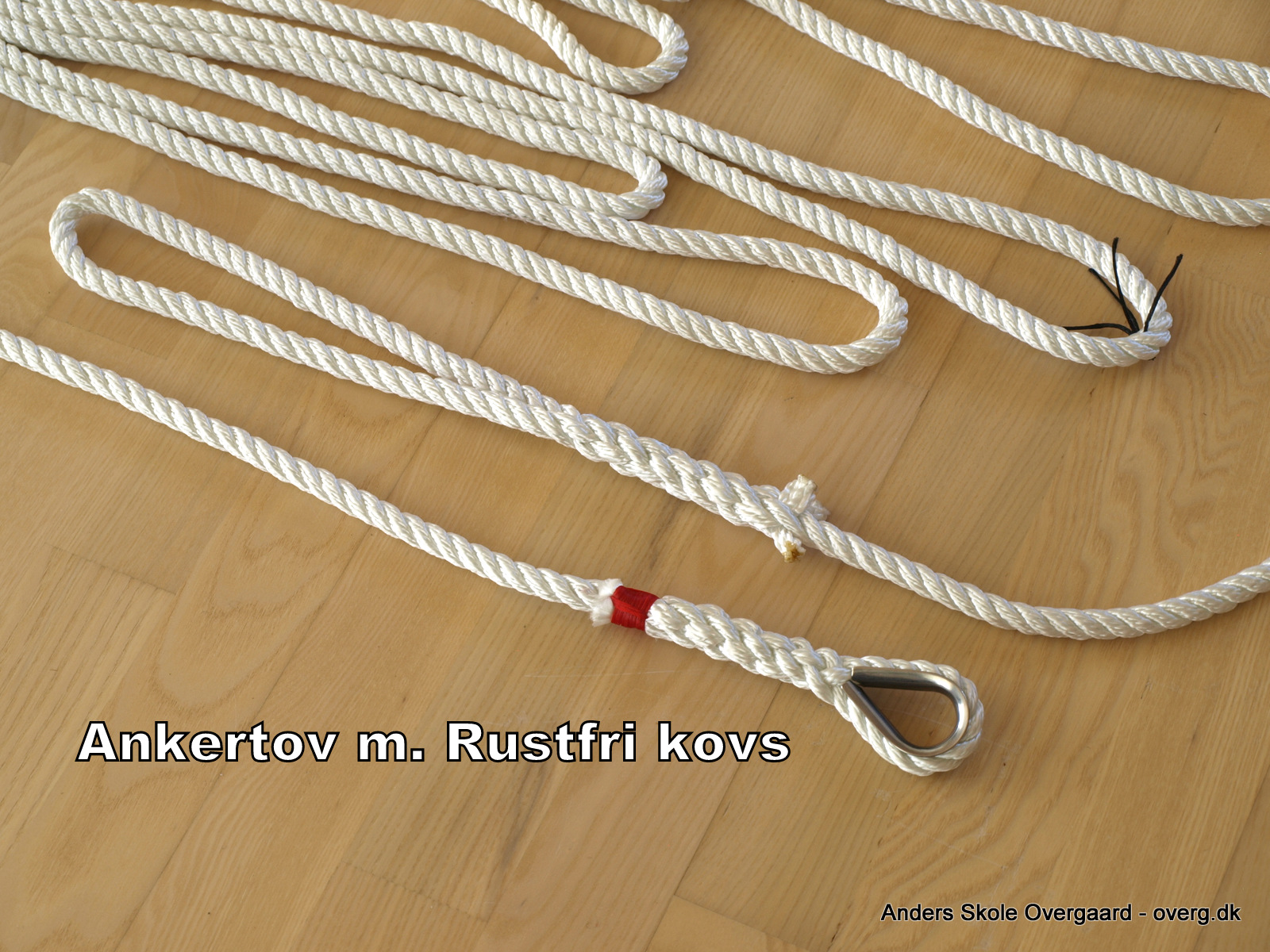 3-slået nylontov er det mest fjedrende tov, som er meget godt til at absorbere de hårde ryk, der ellers kan løsne ankeret og give voldsom spidsbelastning på grejet.