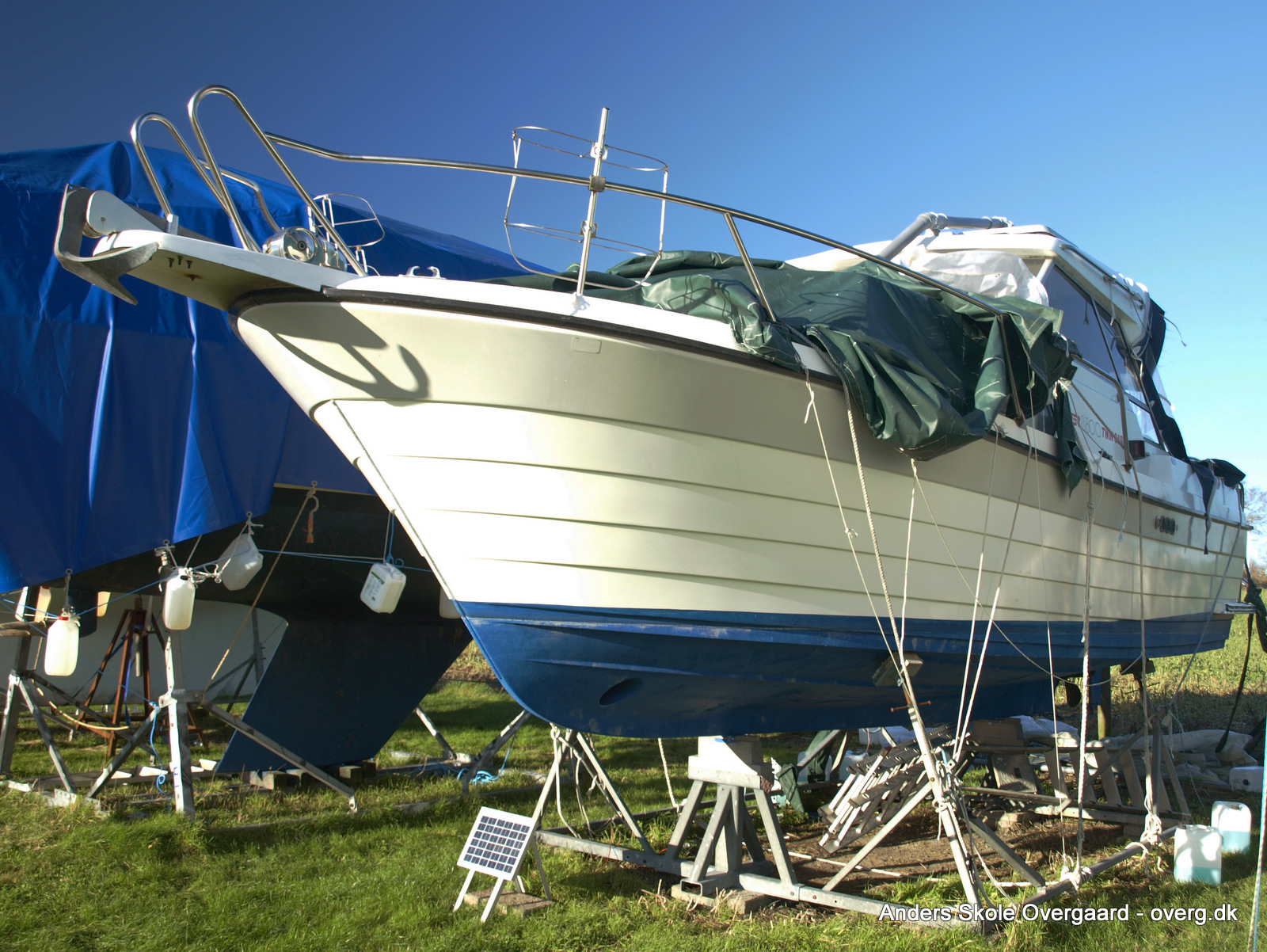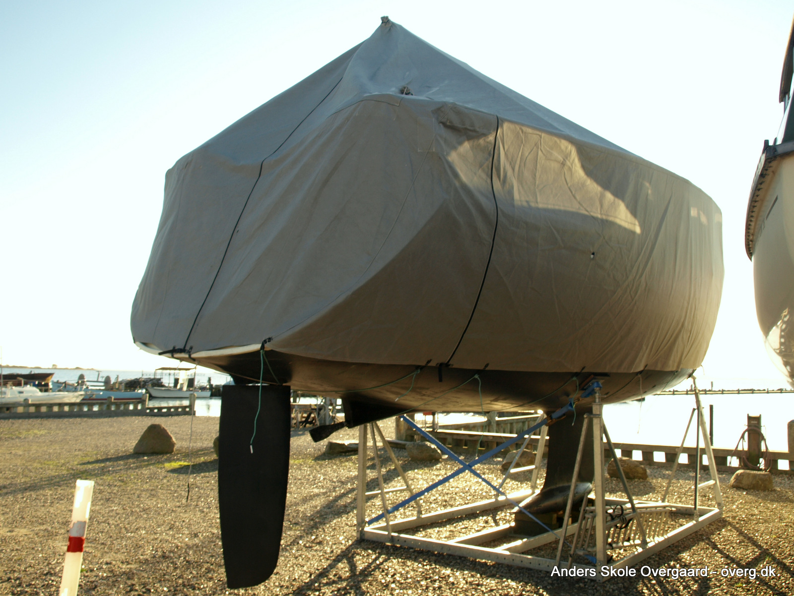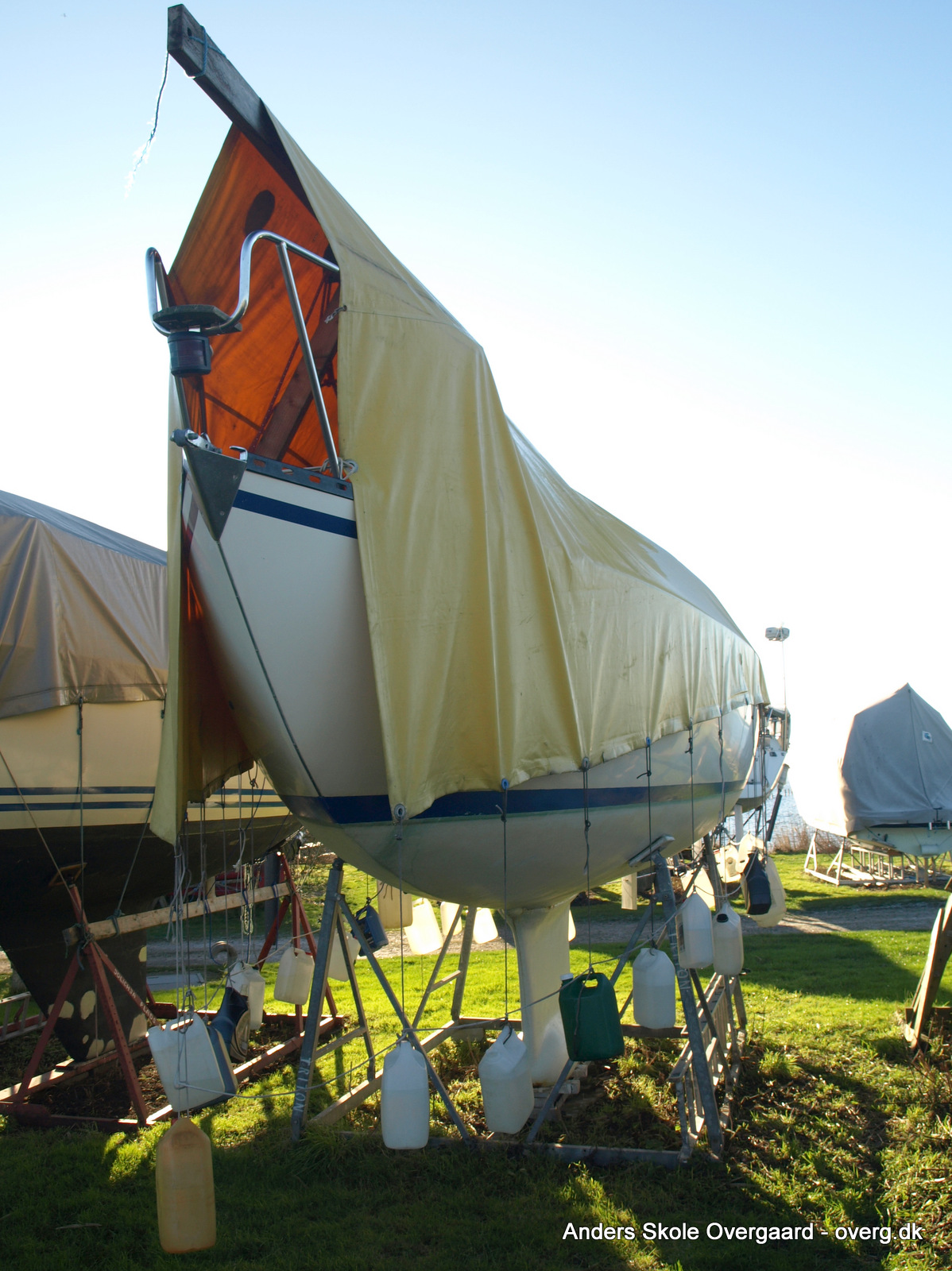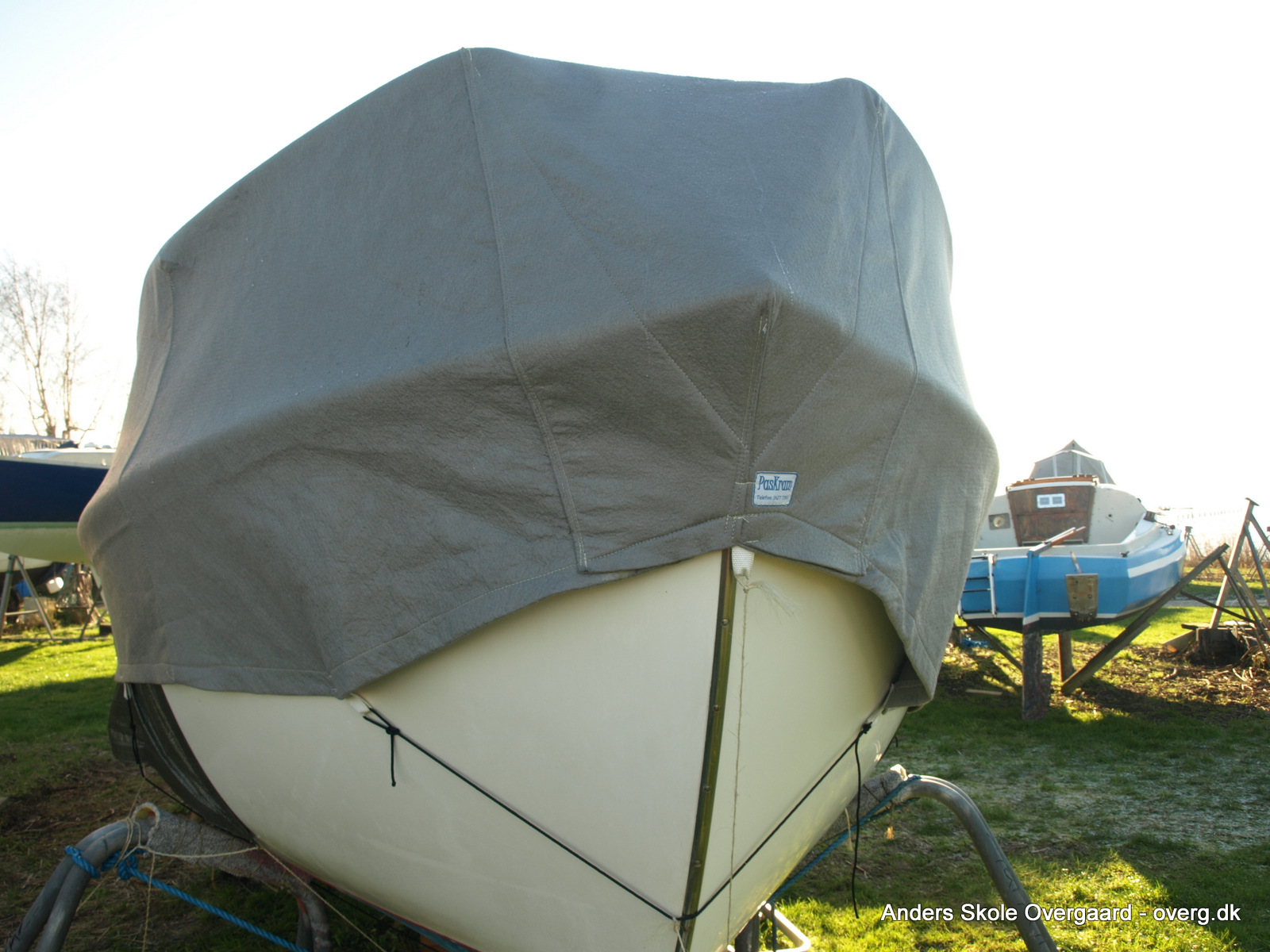 HUSK at glasfiberen godt kan tåle den danske vinter. Måske er det bedre helt at undvære en presenning, hvis den blafrer og slider på gelcoaten.