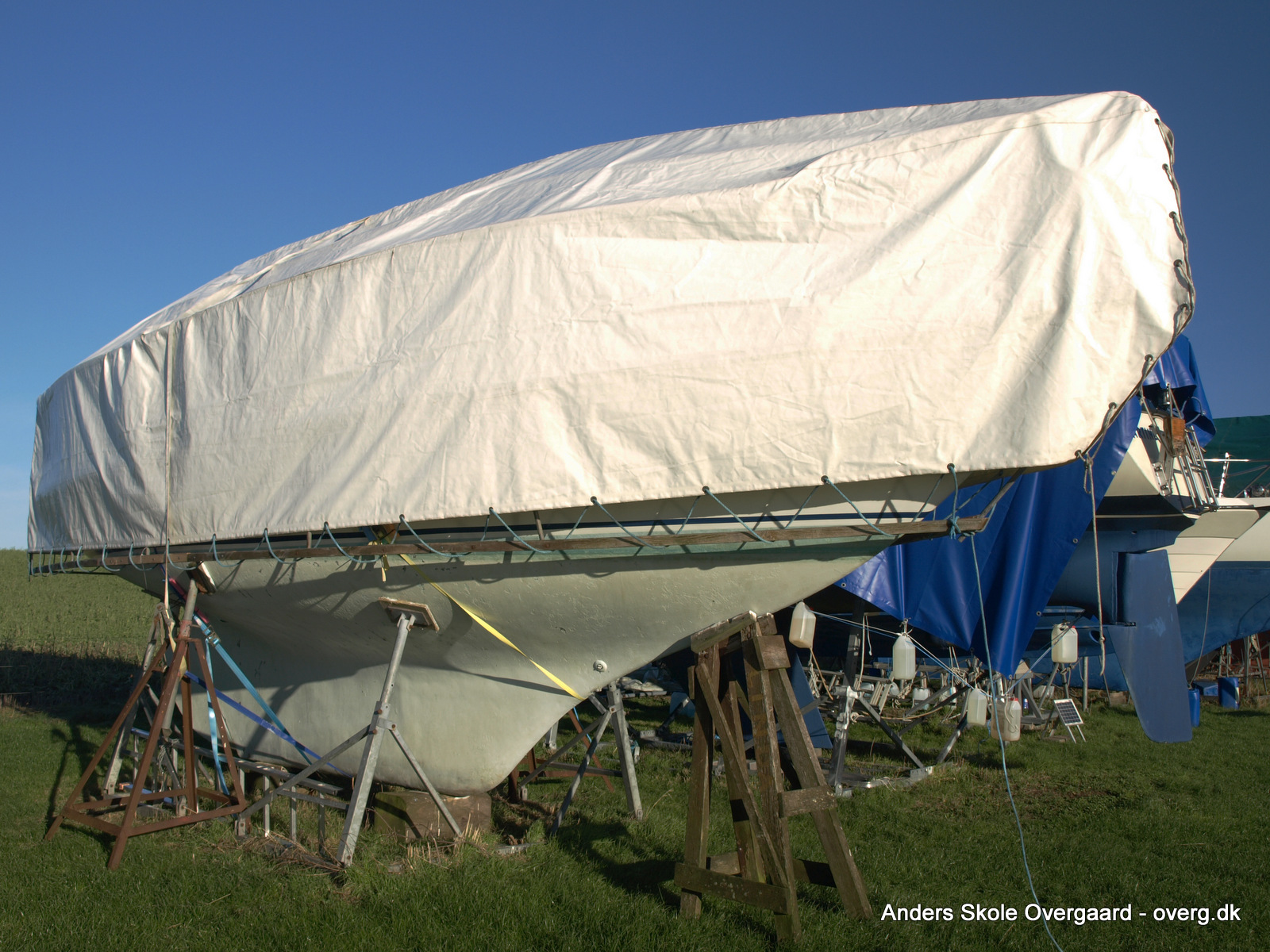 Fibertex vinterpresenning er langt det bedste, fordi det er åndbart – men lidt dyrt hvis du skal have den syet hos en sejlmager.